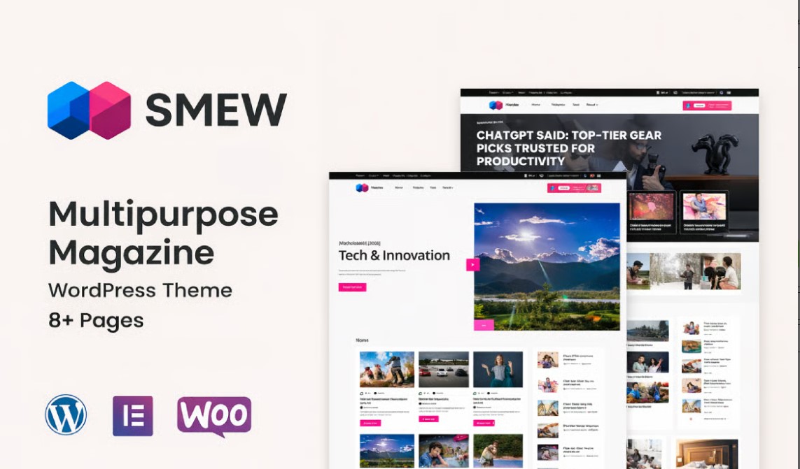 Smew Multipurpose Magazine WordPress Theme is a multipurpose magazine WordPress theme focused on content presentation, layout flexibility, and technical consistency. It is designed for blogs, magazines, and editorial websites that require structured layouts and reliable performance.